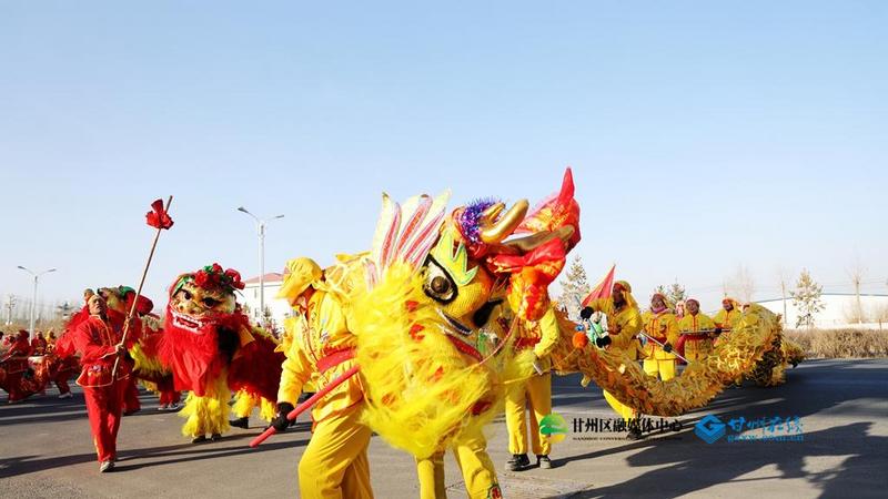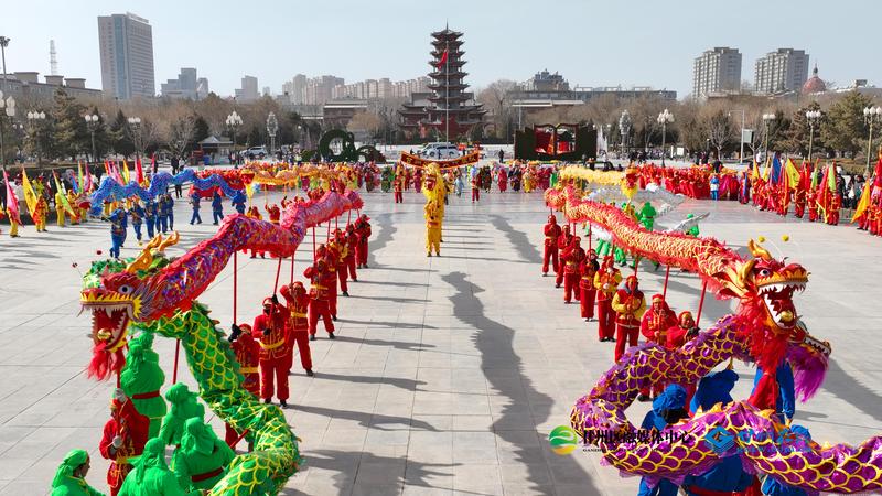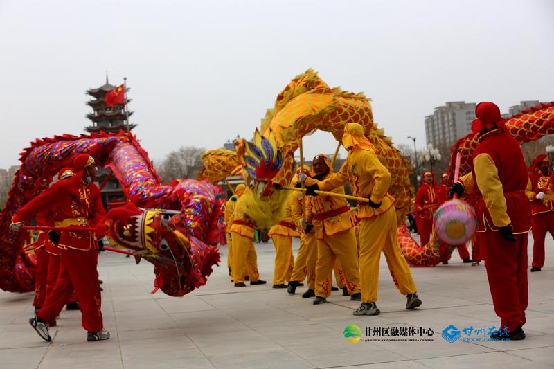 甘州府城年味浓 龙腾狮舞过小年
